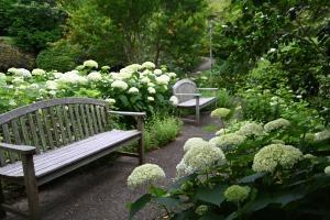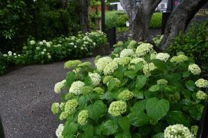 境内にあるレストラン、石窯ガーデンテラス前の白いアジサイが見頃を迎えています。