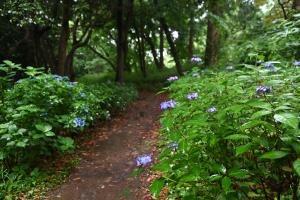 散策路のヤマアジサイが見頃を迎えています。このほか、石窯ガーデンテラス前のアジサイ「アナベル」はまだ蕾です(画像なし)。