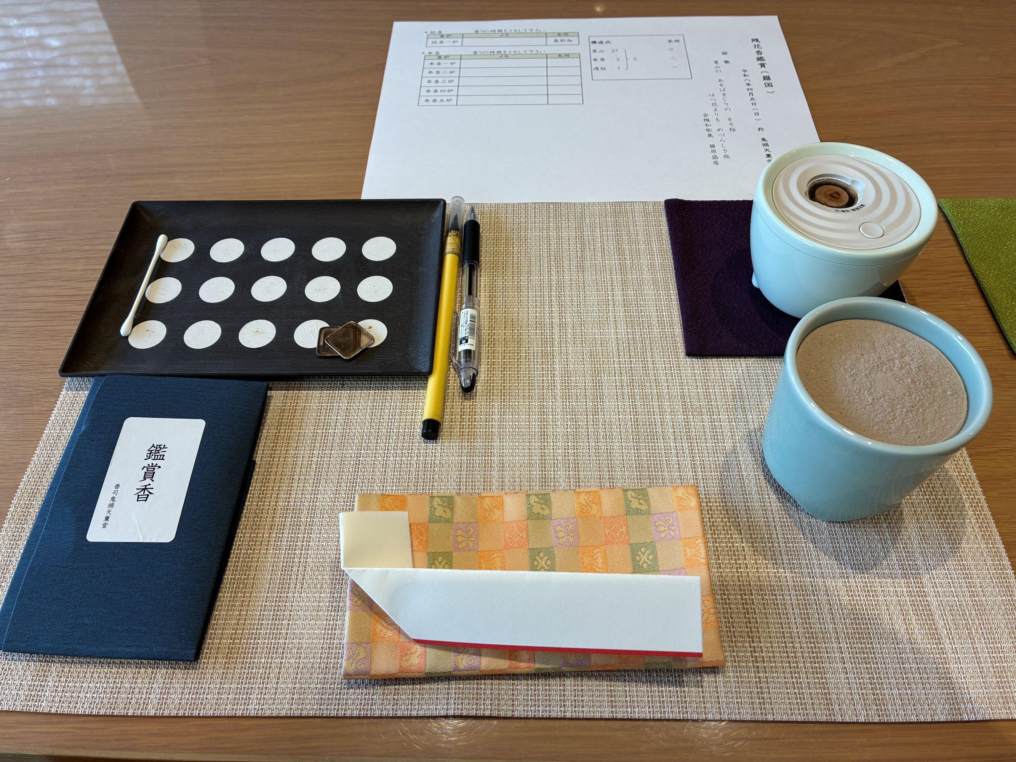 香木は御家流香道の分類である六国(伽羅 羅国 真南蛮 真那伽 佐曽羅 寸聞多羅)の香りを体験していただきます。